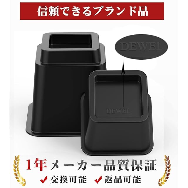 DEWEL 高さ調整 継ぎ脚 かさ上げ テーブル脚 8個セット 洗濯機 台 高さをあげる 机 脚 こたつ テーブル ベッド ソファー 2段 高さ調節 大と小 安定感 耐荷重500kg 正方形 (黒色)