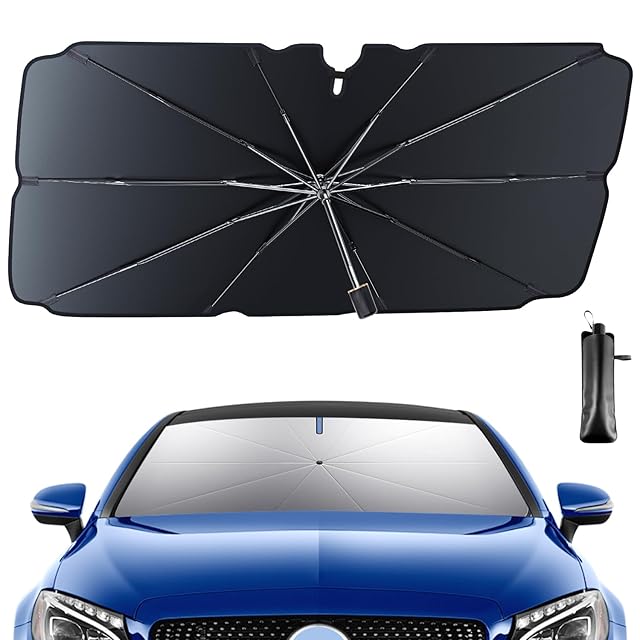 商品名:【2025年强化版】CHICHL サンシェード 車 フロント 車日除け 車用サンシェード 傘型 車用パラソル 遮光 遮熱 取付簡単 車中泊 UVカット 紫外線カット プライバシー保護 チタン断熱素材採用 暑さ対策 収納便利 収納ポーチ付き(S 約120*65cm)