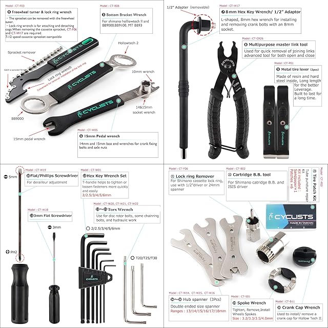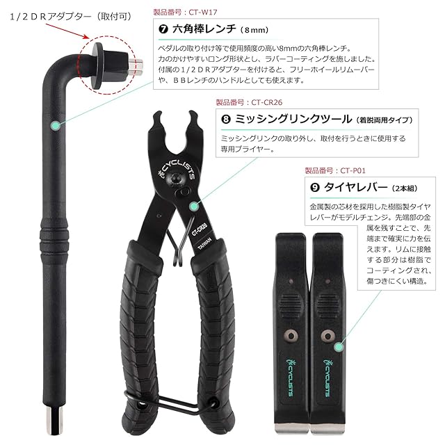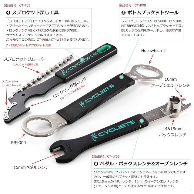 「自転車の専用工具をワンセットに」 ロードバイクやマウンテンバイクなどのスポーツ自転車からママチャリまで、自分で自転車の組立て、メンテナンス、修理に必要な工具が一通り揃った専用工具セットです。