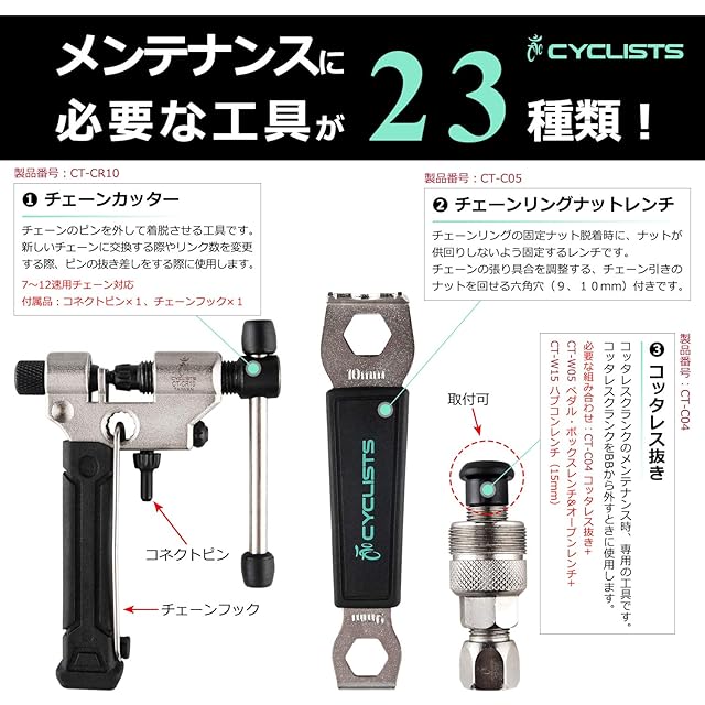 商品名:CYCLISTS 自転車専用工具セット 23点セット シマノ対応 ツールボックス付き 自転車 組立て メンテナンス 修理(CT-K01)