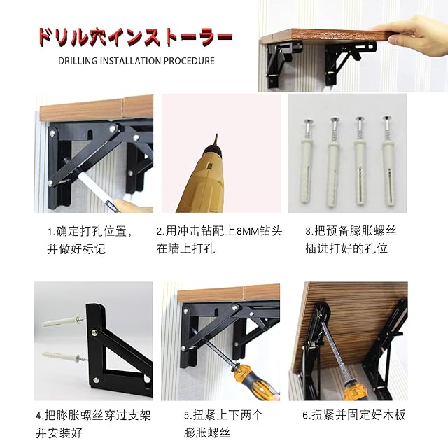 DIYが苦手な方でも簡単に設置できます。パッケージには、適切な取り付けアクセサリ、高品質のステンレス鋼製ネジ、拡張チューブが含まれています。2つの棚受けブラケットが互いに平行で壁に垂直であることを確認する必要があります。