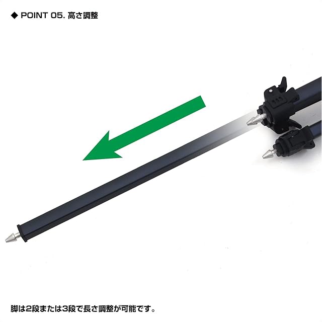 脚は伸縮、竿掛けは折りたたみが可能でコンパクトに持ち運び可能です。