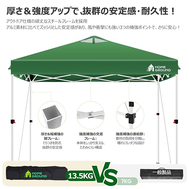 【進化した付属品で、高まる安定性!】【ポイント①】より大きい脚プレートを採用: 地面にしっかりと食い込み、安定感がアップ!【ポイント②】より長いペグを採用: 強風でもしっかり固定、設置が簡単で安全性が向上!【ポイント③】より太くて丈夫なロープを採用: 耐久性が増し、さらに安心して使用できます!