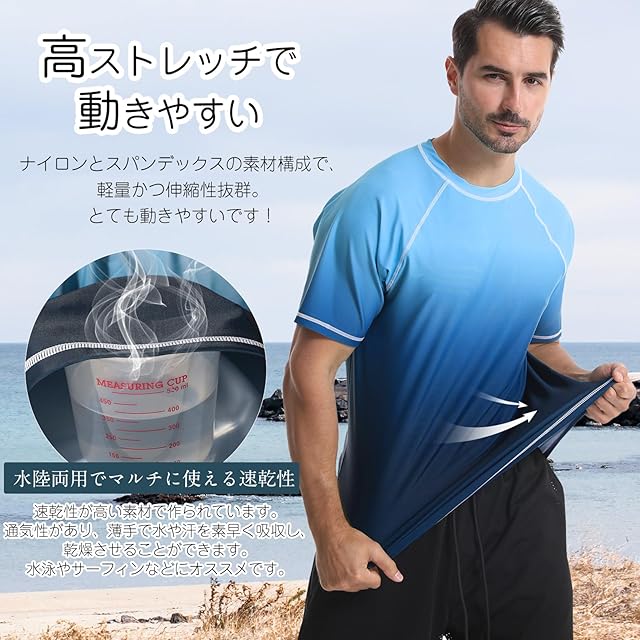 [シュアナウ] ラッシュガード 半袖 メンズ 水着 夏 UVカット 接触冷感 スイムウェア スポーツ シャツ スイム 水陸両用 大きいサイズ マリンスポーツ 吸汗速乾 UPF50+ | Trend Design BASE店