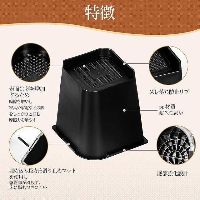 商品名:継ぎ脚 高さ調節 こたつ 継足し ベッド・テーブル・ソファ・机・こたつ 高さを上げる足 テーブル脚台 多段階 高さ調節脚 暖房器具 ABS 4個セット 高さ20.4cm