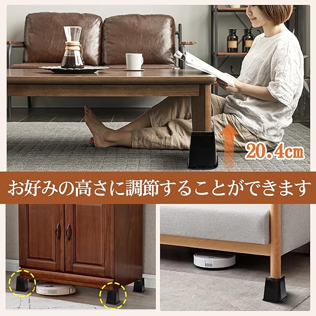 継ぎ脚 高さ調節 こたつ 継足し ベッド・テーブル・ソファ・机・こたつ 高さを上げる足 テーブル脚台 多段階 高さ調節脚 暖房器具 ABS 4個セット 高さ20.4cm | Trend Design BASE店
