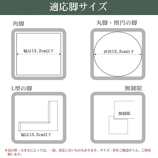 【注意事項】大型家具の脚が本品に納まる範囲かどうか、事前にご確認の上、お買い求めください。サイズ内でも、こたつの脚の形状により一部入らない場合があります。