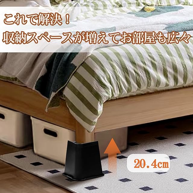 【使用効果】家具の脚を簡単に高くすることではなく、スペースをプラスし、掃除もらくになり、高齢者にとって助けナシでベッドから出れます。収納力アップももちろんアップします。