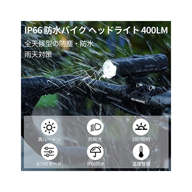 【6 つ照明モード、防眩機能】 400LMの自転車用ヘッドライトで、夜間運転中の視認性を高めることです。6 つの調光モードを選択でき:長く明るいは高/中/低輝度、(キーを2回押すと)省電力、高速フラッシュと低速フラッシュ。ライトが地面を照らし、車両や歩行者がハイビームの影響を受けません。夜間の運転がより安全になります。