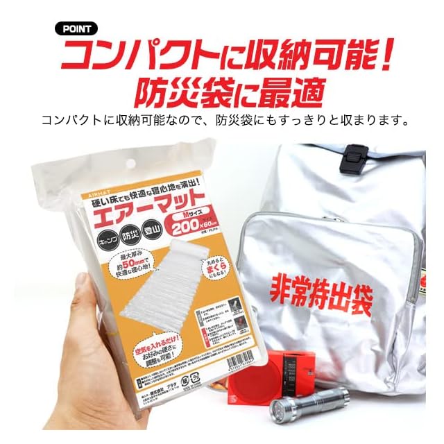 商品名:エアマット キャンプ 防災用 簡易 軽量 コンパクト Mサイズ 【 200cm 】 2個セット