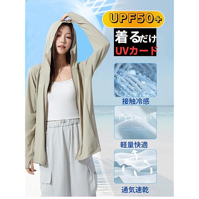 商品名:[Beatgos] ラッシュガード レディース メンズ パーカー 長袖 uvカット 接触冷感 upf50+ ゆったり 紫外線対策【男女兼用】(漠北カーキ L)