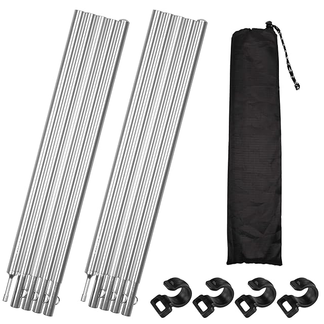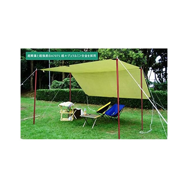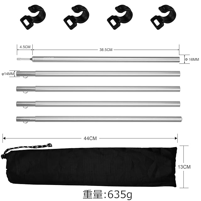 商品名:テントポール アルミ製テントポール タープポール A7075 超々ジュラルミン 2本セット 5本連結 195cm 直径 16mm 分割式 超軽量 アルミ サブポール キャノピー 用 ポール 収納バッグ 4本フック付 期間
