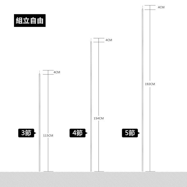 【簡単に接続】ポールとポールの間に連結金具があり、差し込めば簡単に接続出来ます。説明書など要らずに誰でも簡単に使えます。分割式のポールは状況に合わせて適度な高さを調整して、様々なところで利用できます。