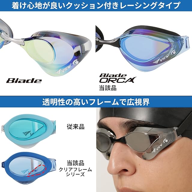 商品名:[ビュー] スイミングゴーグル BladeORCA 日本製 レーシング クッション付 ミラータイプ 10歳~大人用 Fina承認モデル くもり止め機能SWIPE搭載 V230SAMC SKOR