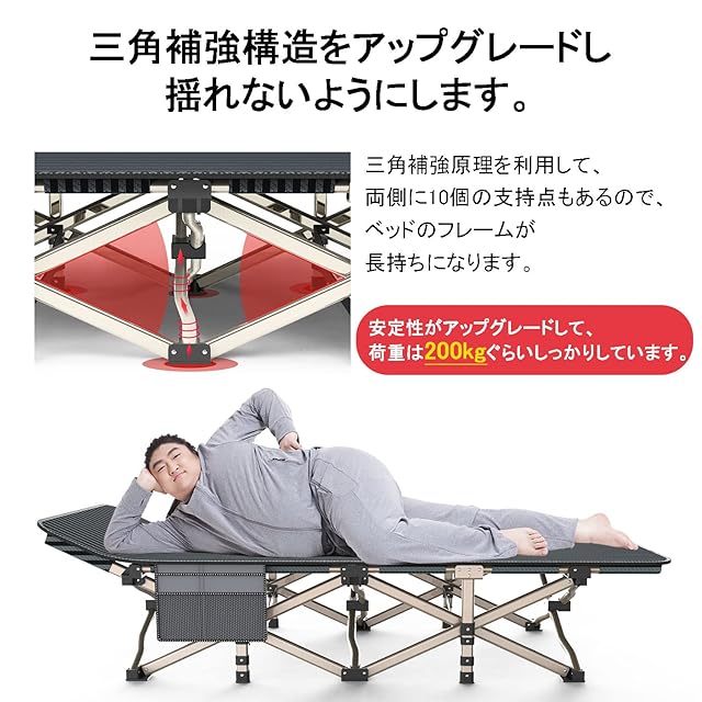 【頑丈な鉄骨】-重鋼管を使用して、X型構造の携帯型折りたたみベッドは安全と安定を確保し、200 KGを支え、丈夫な大人をサポートできます