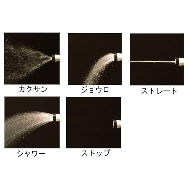 【5種類の水形が選べる】「カクサン・ストレート・ストップ・ジョウロ・シャワー」の5種類の水形。先端を回すだけで簡単に切り替えられます。用途に合わせてご使用いただけます。