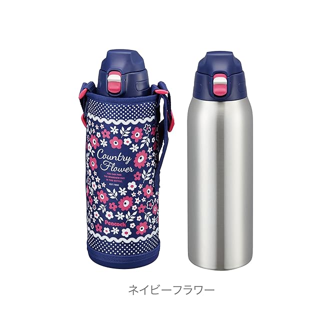 ピーコック魔法瓶工業(The-peacock) ピーコック 水筒 キッズ 1000ml 保冷 ワンタッチ 直飲み 子供 ダイレクトボトル ポーチ付き 1l ネイビーフラワー AJC-F101 AKF | Trend Design BASE店