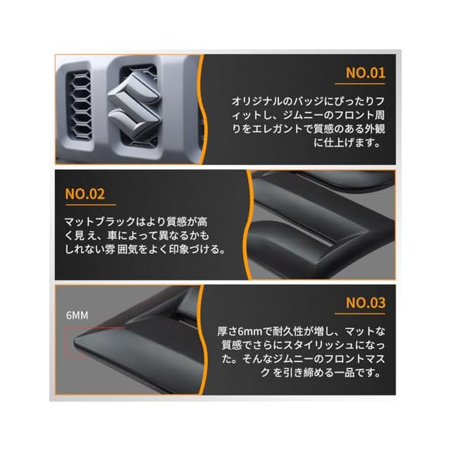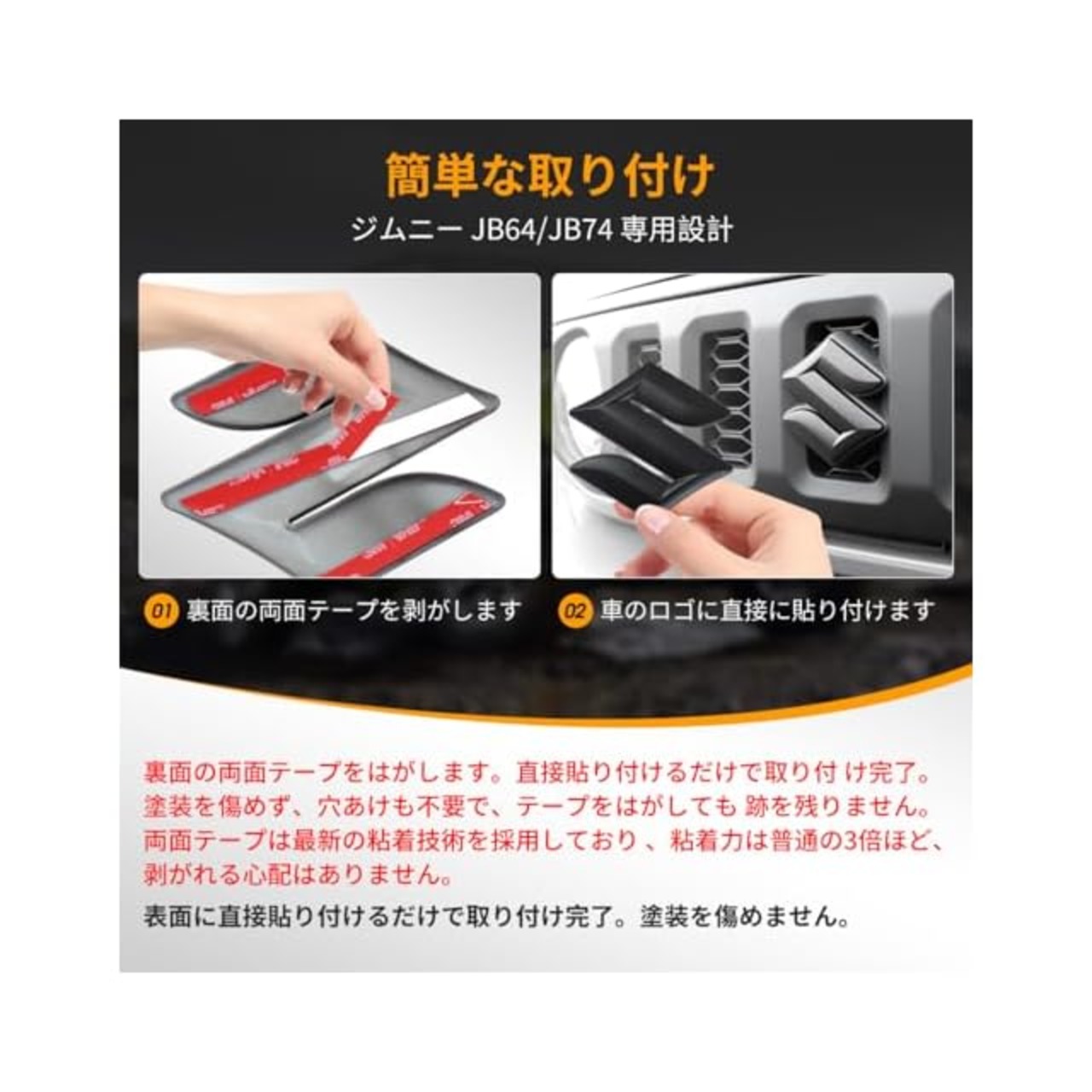 【商品仕様】サイズ:約横10cm×縦10cm 色:マットブラック/光沢ブラック/炭素繊維ブラック適合車種:新型スズキ ジムニーJB64/JB74に適用します.