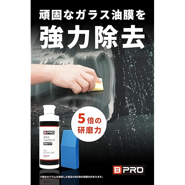 商品名:BPRO 車用コンパウンド ガラスコンパウンド 強力タイプ 250ml(パッド付) [5倍の研磨力] 洗車 フロント リア