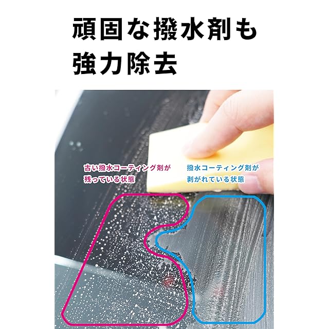 しっかり落とせる強力タイプ:古い撥水剤やフッ素系撥水剤などの一般的な研磨剤(コンパウンド)もしっかり落とすことができます。油膜取りを落とすのに苦労していた、コーティング剤がうまくのらないなどのお悩みを解決することができます。