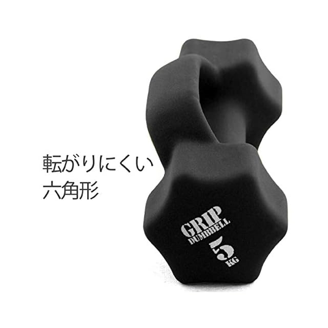 PVCコーティングの滑り止め加工で、手が滑りにくいグリップダンベル。