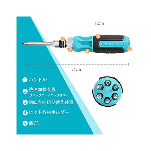 商品名:DURATECH ドライバー 差替ドライバー ドライバーセット 12-IN-1 クイックリリースボールグリップ プラス マイナス トルクス スクエア ラチェットドライバービット 6本付 家具組立 メンテナンス 車載修理工具