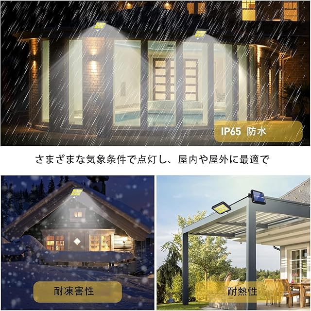 屋外 ledセンサーライトIP65防水性と耐熱性: ご注意ください、ソーラーパネルの上にライトを取り付けないでください。 人の動きを感知してライトが点灯し、 光源がソーラーパネルを照らすため、 ライトがちらつく原因になります。