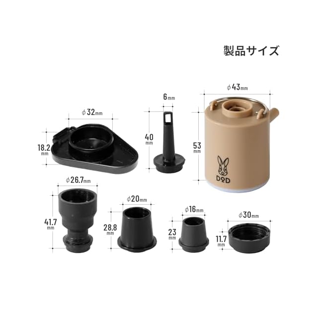 商品名:DOD(ディーオーディー) ソトネノエアポンプ 1300mAh 充電式 【エアマット/ベッド/浮き輪等に】DP1-020-TN