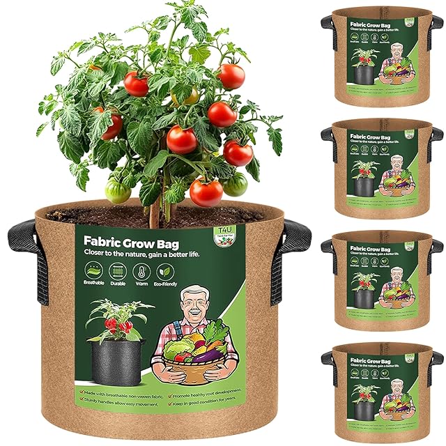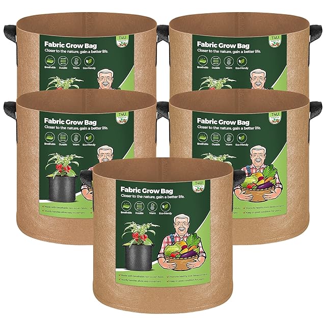 商品名:T4U 不織布プランター 布鉢 持ち手付き 7ガロン 5個セット 不織布ポット フェルト 栽培袋 厚手 植え袋 植物育成 花栽培 野菜栽培 園芸 根域制限 茶色