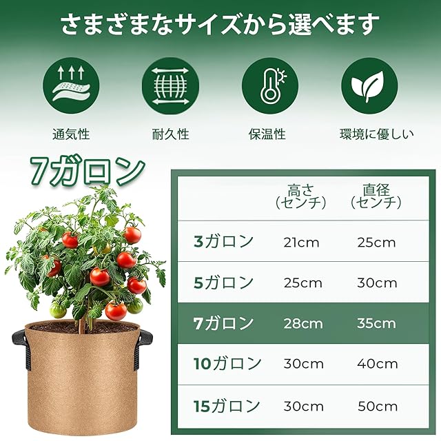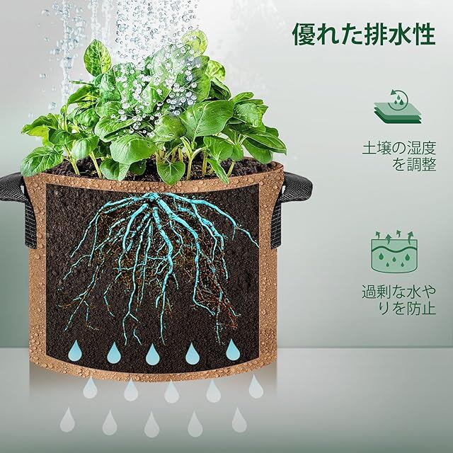 [通気性の生地]厚手の不織布で作られて、通気性、透水性に優れているので植物の発育に適しています。無公害、環境にやさしく、再利用可能の植え袋です。
