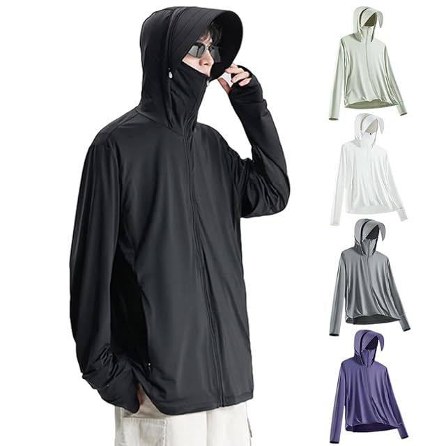 ☀「実用性が高い」☀--指穴付きになったデザインで、手の甲までしっかり覆えるのがポイントです。フロントファスナーはフードの端まで伸ばしているので、ケアしづらい首もラッシュガード着用で肌を守ります。用途やお好みでお選びください、あなたに合うラッシュガードが必ず見つかります。