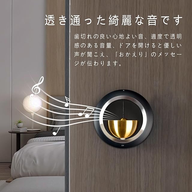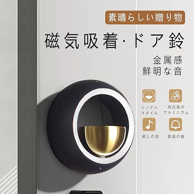 【シンプルでスタイリッシュなデザイン】本体は高品質のアルミニウム合金素材で作られており、酸化に強く、色褪せない明るい色を維持します。インテリアを選ばないシンプルスタイルのデザインなので、空間に邪魔をせず。として使用できますドアベル 店舗用&入り口 鈴。</br></br> 【透き通った綺麗な音です】ドアを開けるたびに、優しい声が聞こえます。真鍮素材の組み合わせにより、このベルの音色は歯切れが良く心地よく、「おかえり」のメッセージも伝えることができます。注意:ドアの開閉方法や力の大きさによっては、ドアベルが正常に応答しない可能性があります。</br></br> 【幅広い用途】ドアベル 店舗用、玄関ドア、勝手口ドア、冷蔵庫のドアに取り付けられます。理髪店のドア、カフェ、雑貨店、その他の店のドアでも使用できます。 ドアを動かすとドアベルが鳴ります。そのため、特に子供やお年寄りがいる家庭や、お客様が来ることを注意する必要がある店舗での使用をおすすめします。誕生日、引っ越しのお祝い、結婚式、クリスマス、母の日、父の日、周年記念日、その他の場面での最高のプレゼントです。</br></br> 【取り付け簡単】2つの取り付けの方法があります。磁力吸着設計で、ドア鈴は各種鉄製ドアに直接吸着でき、穴を開ける必要がなく、跡が残りません。ナノトレースレステープも付属しているので、付属のテープを使用してドアホンを木製またはガラスのドアに固定できます。</br></br> 【仕様と品質】サイズ:幅7.2*高さ7.2*奥行き3.8 cm 重量:約190 g。当社の製品は生産から出荷まで、厳密審査を受けております。ご安心に使用してください。配達などの原因で未使用製品が破損したり、汚れなどがあった場合、ぜひ弊社にご連絡ください。