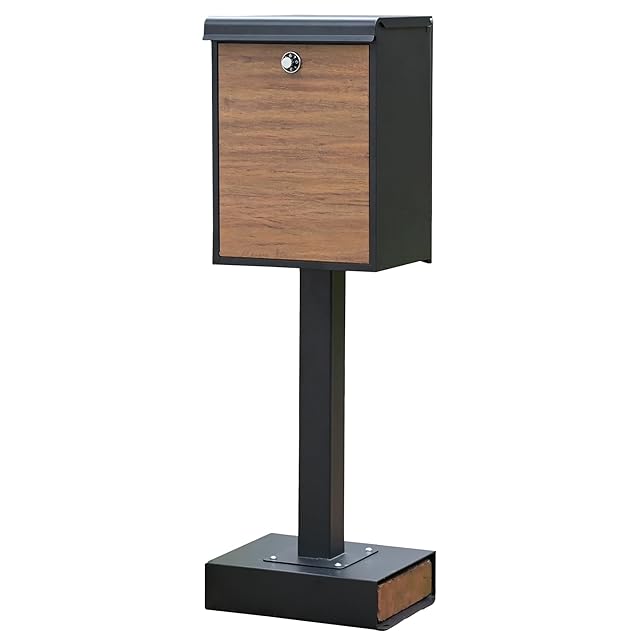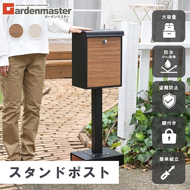ガーデンマスター(Gardenmaster) 郵便ポスト 置き型 屋外 防水 スタンド型 郵便受け 幅35.5×奥行24×高さ99cm YTX0055-1 ブラック/木目調 | Trend Design BASE店