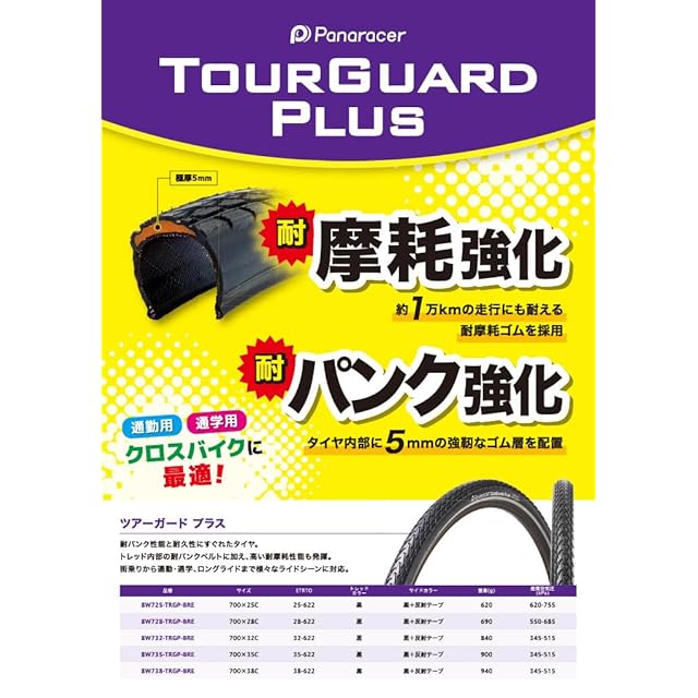 商品名:パナレーサー(Panaracer) ツアーガードプラス 700×28C クリンチャー 黒 8W728-TRGP-BRE