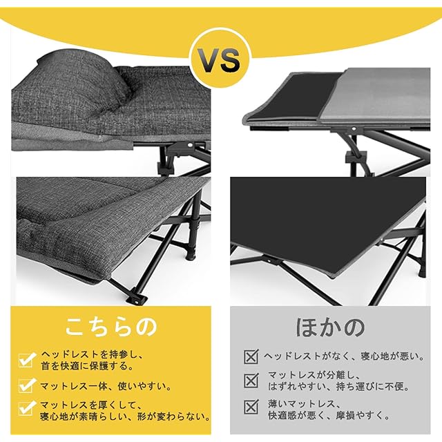 超ソフトなマットで眠りが楽にでき、マットが使用する心配もなく、マットが折りたたみベッドが一体になっており、取り外しの必要がありません