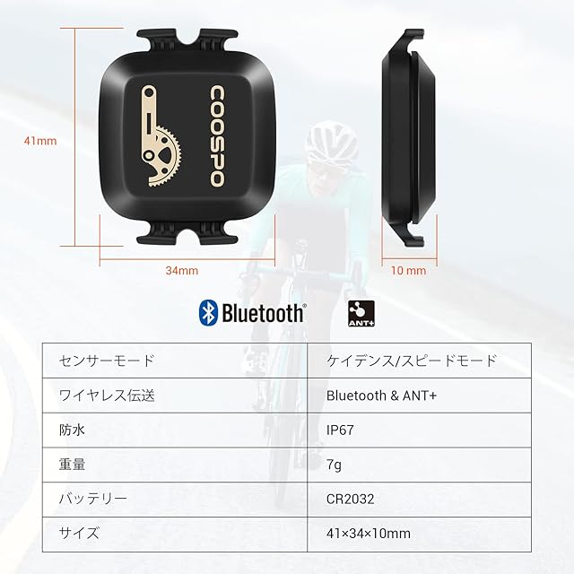 商品名:COOSPO ケイデンススピードセンサー ANT+ Bluetooth 4.0対応接続 自転車コンピュータ用 バイクアクセサリー IP67級防水 日本語説明書付け