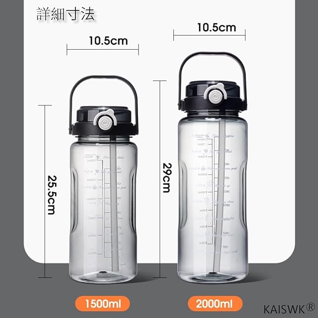 商品名:1500ml、2000ml ボトル 水筒 大容量 ポータブルストロースポーツウォーターボトル 2WAY わら付き 水位目盛付き BPAフリー プラスチックウォーターボトル 大人 子ども アウトドア スポーツ 登山用 キャンプ ランニング ジム 自転車(black,1500ML)