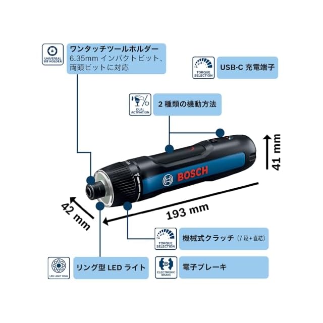 【標準付属品】本体、USB Type-Cケーブル1本、専用ケース1個、ビットセット(8本セット)、・延長ビットフォルダー1本 (内容は予告なく変更となる場合があります)