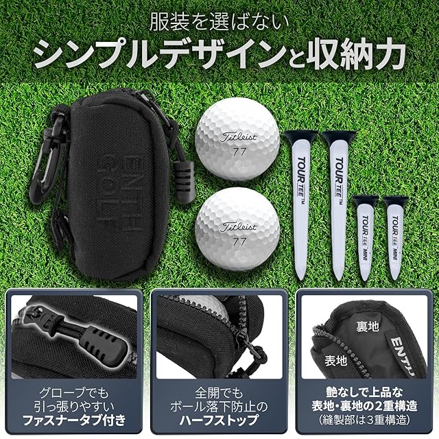 商品名:ENTH 1000D 高耐久ナイロン ゴルフボールケース【2個用】開閉式グリーンフォーク ゴルフ マーカー ハットクリップ 4点セット