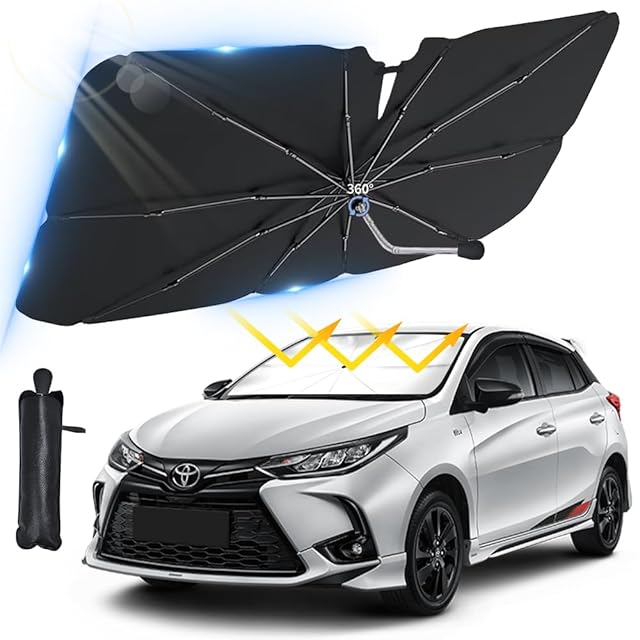 【頑丈な10本骨組み・収納便利】10本のガラスファイバー+鋼製で作られた骨を採用し、製品の安定性を効果的にする同時に、柔軟性もあってかなり頑丈で壊れにくいです。傘骨は車のフロントガラスに完全にフィットし、隅々まで紫外線を遮断できます。サンシェードは傘型のデザインなので、事前に設置する必要はなく、開くだけで利用でき、不要時には傘をしまって収納バッグに入れ、場所を取らないです傘の様にコンパクトで、持ち運びも楽々、女性の方でも簡単に設置できます。