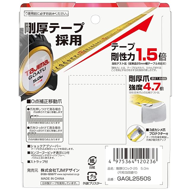 商品名:タジマ(Tajima) コンベックス 剛厚テープ5m×25mm 剛厚Gロック25 尺相当目盛付 GAGL2550S
