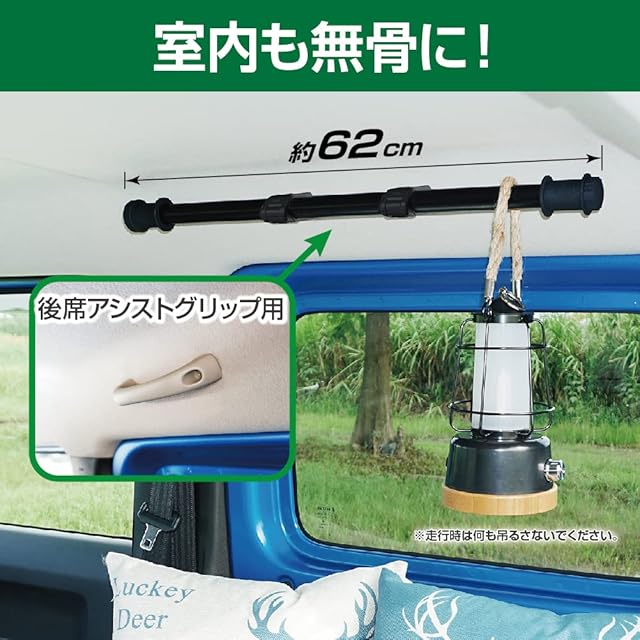 LEDランタンやハンガーなどを掛けられるので車中泊の際に便利です。
