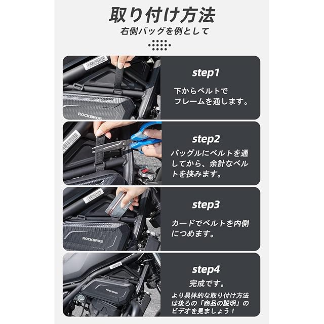 商品名:ROCKBROS バイク サイドバッグ バイク バッグ 撥水 ツールバッグ 大容量 1.5L ハード系 耐圧 耐摩耗 変形しにくい 小物入れ 夜間反射 カーボン調 止水ファスナー付き ホンダCM300/CM500に対応 ブラック 左右セット