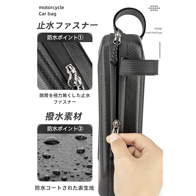 【耐久性&変形しにくい】耐摩耗性に優れたEVA+PU素材を採用して、サイドバッグの耐久性がよく引き裂けにくいです。落下に強いハードシェルバッグとして、見た目にもタフ&クールで、形状崩れもおきにくいです。中に重たい工具や硬いパーツを入れても大丈夫です。
