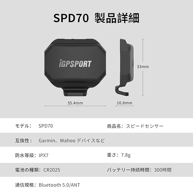 商品名:iGPSPORT ケイデンス センサー CAD70 & スピードセンサーSPD70 ワイヤレス 300時間持続 IPX7防水 7.9g サイコン センサー ANT+ / Bluetooth デュアル対応 サイクルコンピュータ Zwift/iGPSPORT/Garmin/Wahoo/Bryton/Coospo用の 日本語説明書付け