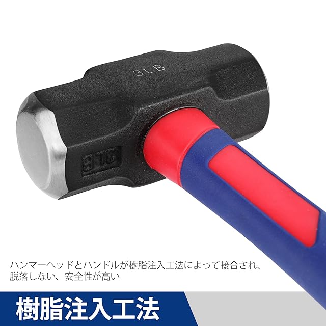 【樹脂注入工法】ハンマーヘッドとハンドルが樹脂注入工法によって接合され、脱落しない、安全性が高いです。
