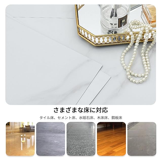【粘着タイプ フロリングシート】床タイルの表面は防水加工されており、水が付いても浸透しない。バックゴムは帯状の設計で、粘着力が強く、裏面のゴム材料が均一で、施工がより簡単である。重い家具を置いてもタイルがずれない。背景ゴムの保護フィルムは、環境に配慮した透明な接着材で作られ、より軽量になっています。