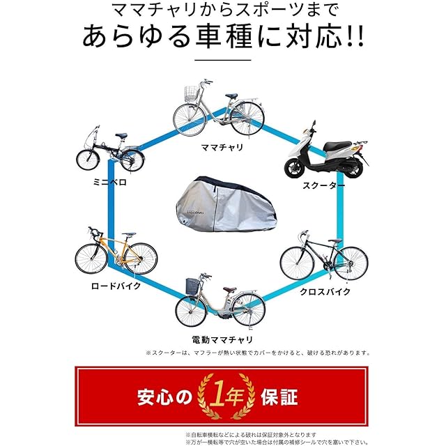 ✅【自信があるから一年】自転車カバーでは珍しい、一年付き!ご購入後一年以内の水漏れ、破損は返品、返金、交換にて対応いたします。(転倒による穴は外となります。付属のリペアパッチで対応下さい)