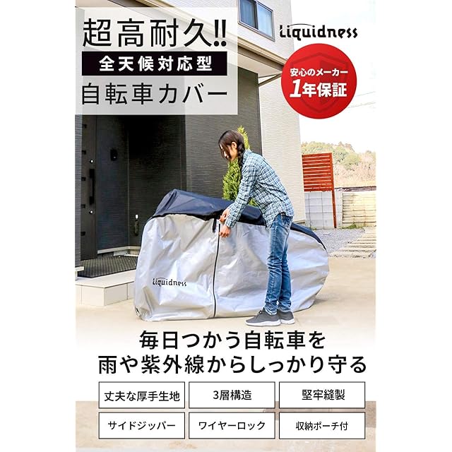 商品名:Liquidness 自転車カバー サイクルカバー メーカー 超厚手 270D 防水 破れにくい 防犯 防風 防塵 UVカット ファスナー 収納袋つき (シルバー×ブラック)
