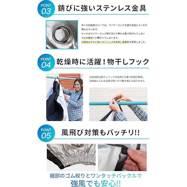 ✅【破れにくい超厚手生地】 自転車カバー最高クラスの270Dの超厚手生地を採用。 摩擦に対する高い耐久性、持続性を実現しました。